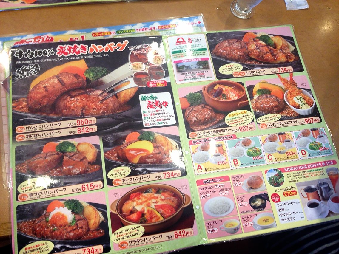 しかし、お店の公式HPには『天井の高い木づくりの「ふるさとの店」、「まつりの夜店」を思わせるテント張りのオープンキッチンからジュジュゥ…と作りたてのリズムと、香ばしい匂いにのって、「牛肉100%・炭焼きハンバーグ」が、「目の前」の「テーブル上」へ運ばれてきます。』と書いてあり、想像しただけでよだれが出ます。笑