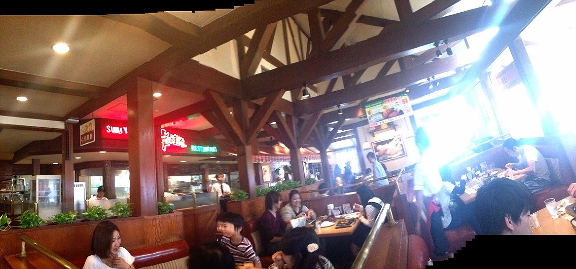 11時開店で、僕らが着いたのは11時45分。既に店内はいっぱいでした。 店内はいたって普通のファミレス。