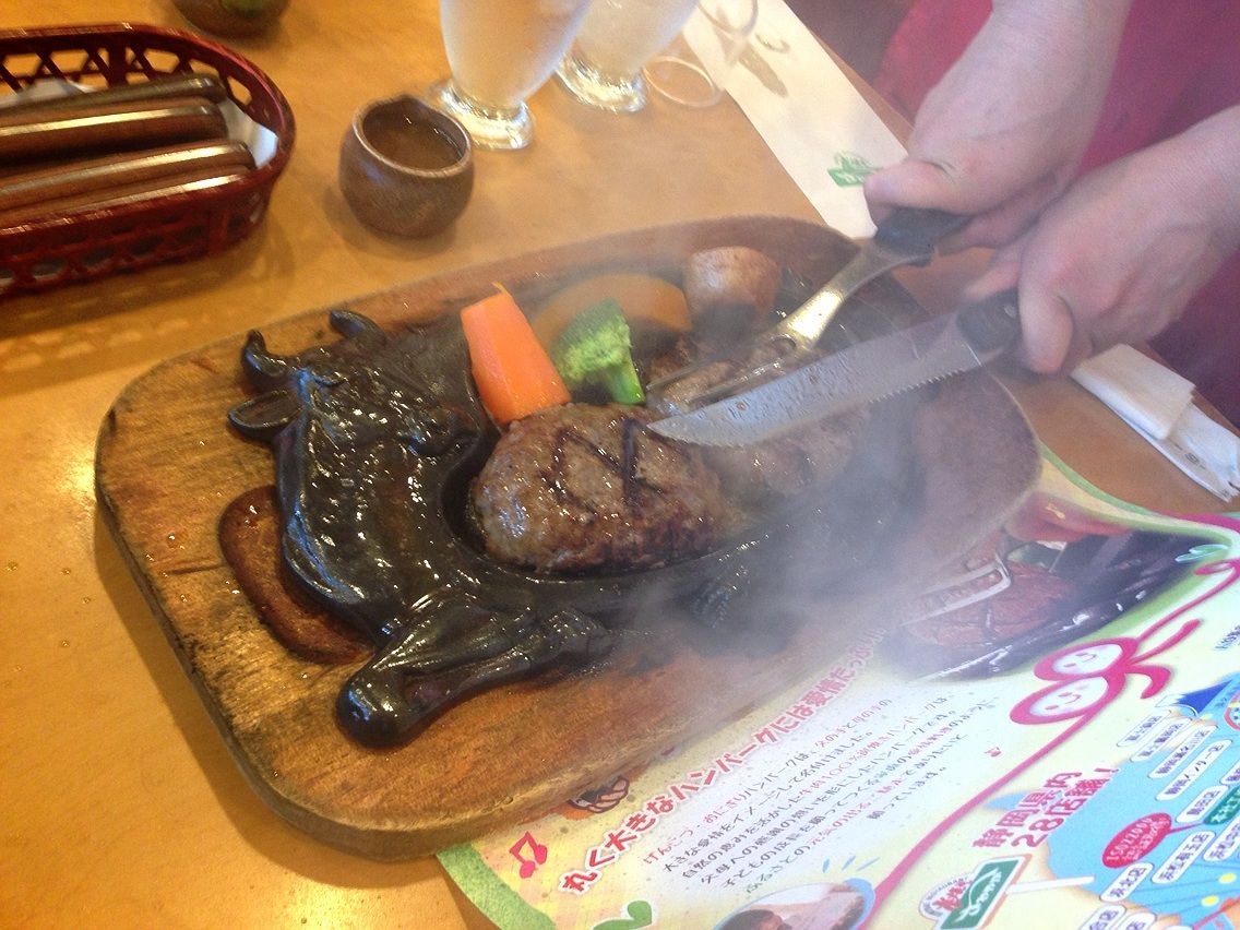 そのげんこつハンバーグを切ってくれる映像はこちら。