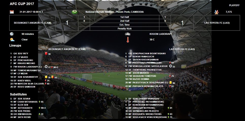 プノンペンでAFCカップ2017プレーオフ第1戦ボンケット・アンコールFC(カンボジアリーグ1位)対ラオトヨタFC(ラオスリーグ2位)が行われ、両チーム合わせて6人もの日本人選手がスターティングメンバーに名を連ねた。