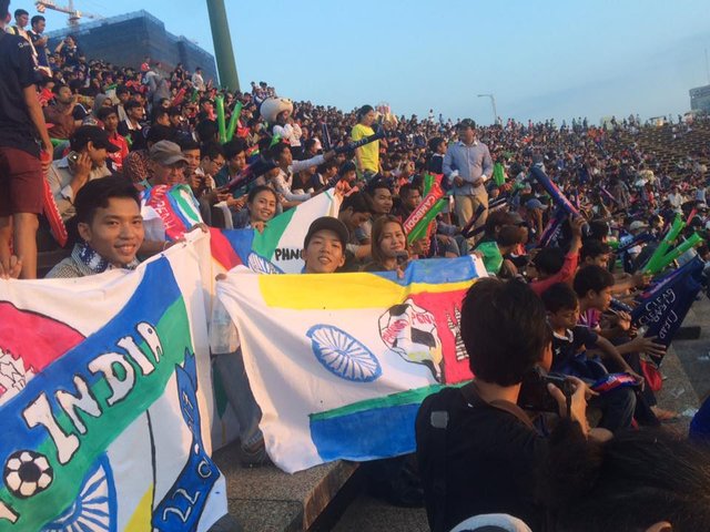そして、このフラッグがお披露目になったのは昨日、プノンペンのオリンピックスタジアムで行われた「国際親善試合 カンボジア代表 対 インド代表」戦。