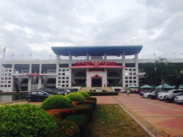 バンコク中心部から飛ばしに飛ばしたが、重体の影響で結局予想よりだいぶ遅れて到着したため、キックオフには間に合わず。