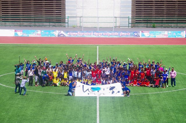 今回はカンボジアサッカー協会の全面協力のもと、オリンピックスタジアムで『Dream Challenge Club』というサッカー大会を開催し、参加者はスマオン村から子供たち36名、保護者・先生など約90名、プレイベンの他地域の村から45名を招待。子供たちの憧れであるカンボジアサッカーの聖地オリンピックスタジアムでの試合に子供たちは大興奮だった様子。彼らにとっては忘れられない1日となっただろう。